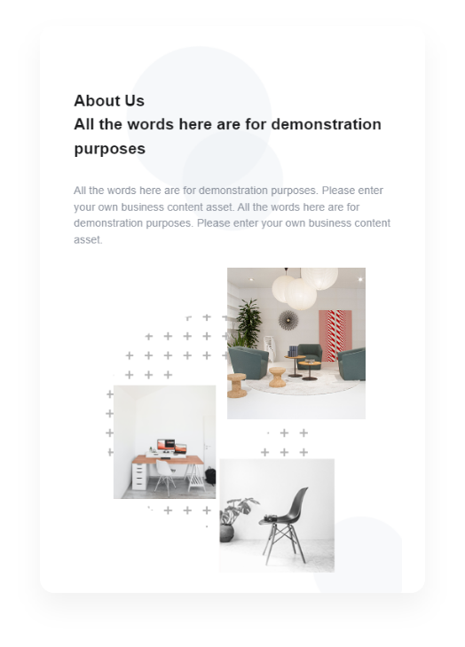 - 擁有設計師獨家設計的模板,網站建設只需將模塊拖到編輯器中,編輯內容,保存并發布您的網站!簡單高效,精致美觀。